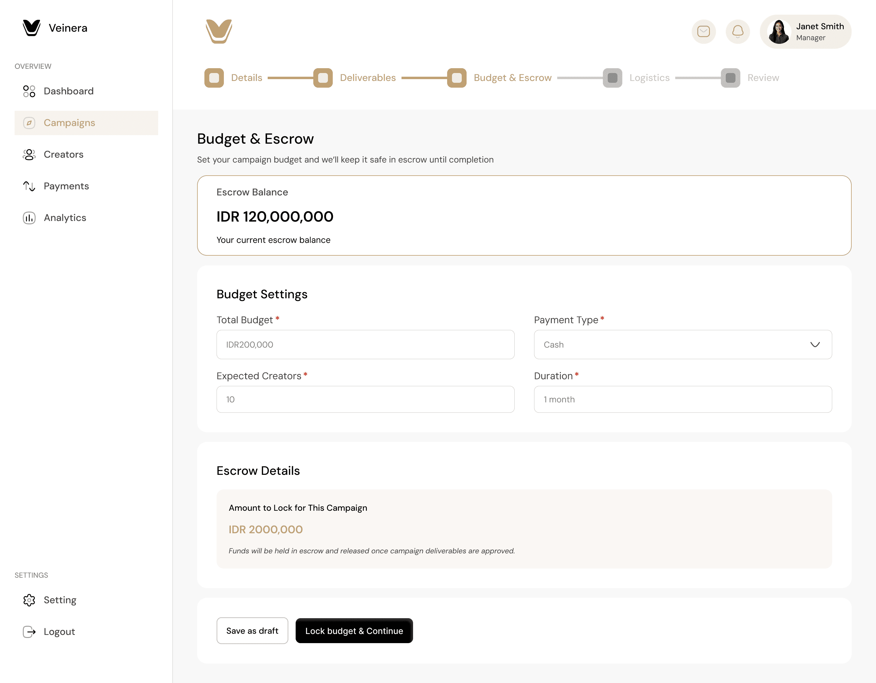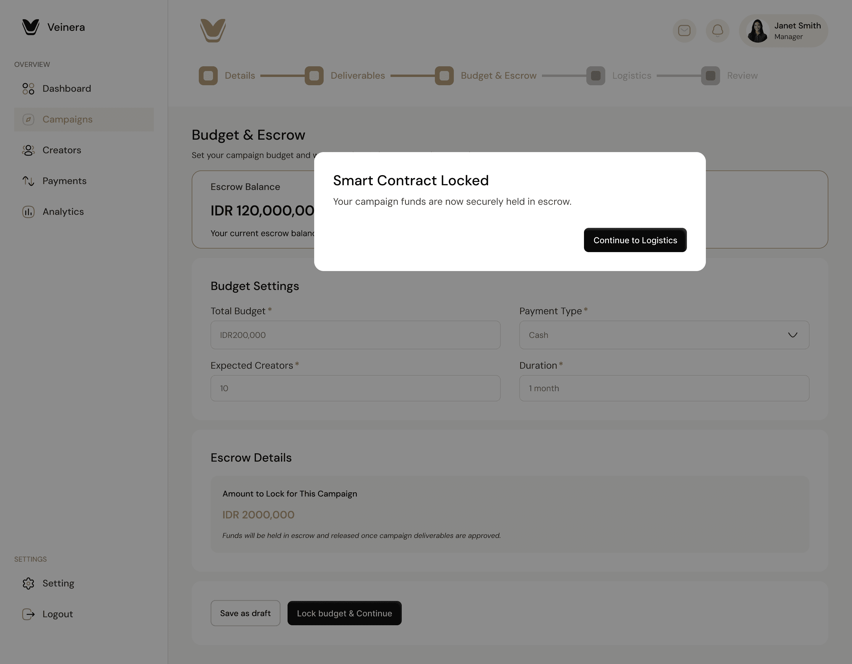 Protect every campaign with secure payment holds, clear budgets per creator, and contract-backed payouts that only release when work is delivered and approved.